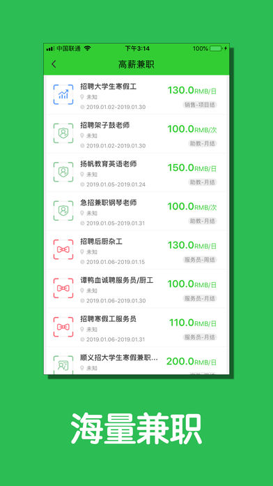 这是一款实用的兼职应用。为用户朋友们提供了海量的优质兼职机会。多样的职位类型。轻松即可找到你心仪的工作。在这里,你只需要找到合适你的工作岗位即可,其他的我们为你一一解决!欢迎下载使用吧。